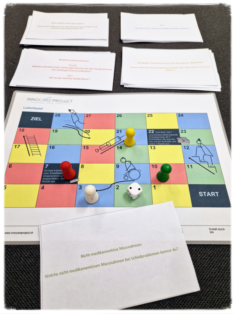 Dieses Spiel wurde zur Wissensvermittlung bereits mehrfach und in verschiedenen Langzeitpflegeinsitutionen durchgeführt. Die Rückmeldungen der Mitarbeitenden waren durchwegs sehr positiv. Wenn auch Du daran interessiert bist, freut sich InnoCare Project sehr auf Deine Kontaktaufnahme.